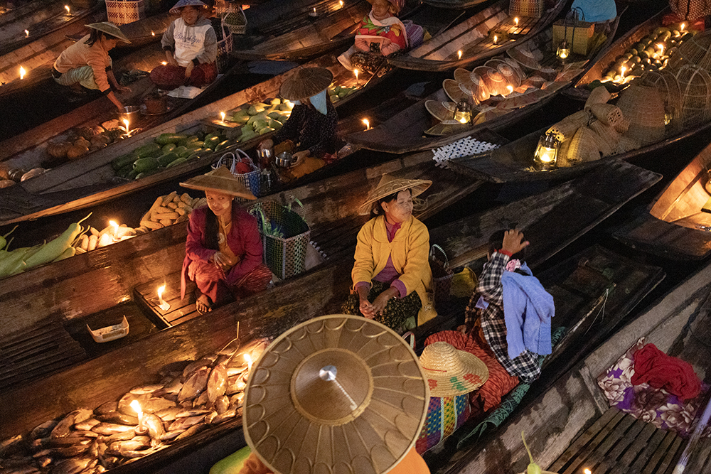 Gün doğumunda yüzen pazar çekimlerimizi gerçekleştiriyoruz. Kayıkların içinde sebze ve meyvelerini satan satıcılar, balıkçılar çalışma konumuz. Öğleden sonra Inle Gölü’ndeki geleneksel mutfak evlerinin fotoğraflamaya gidiyoruz. Bütün gün yerel halkın portre çekimlerini de gerçekleştireceğiz. Gün batımında ise balıkçı bir aile ile çekimlerimizi gerçekleştireceğiz.